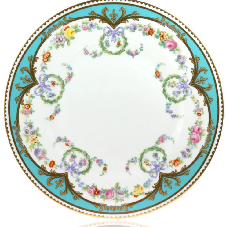 This Salad Plate Features Five Green Wreaths Which Are All Elegantly Linked With Colourful Floral Garlands And A Wonderfully Ornate 22 Carat Gold Pattern. A Dessert Stand Which Formed Part Of A Minton Service Purchased By Queen Victoria At The Great Exhibition In 1851 Is The Inspiration Of This Delicate Chinaware Collection.