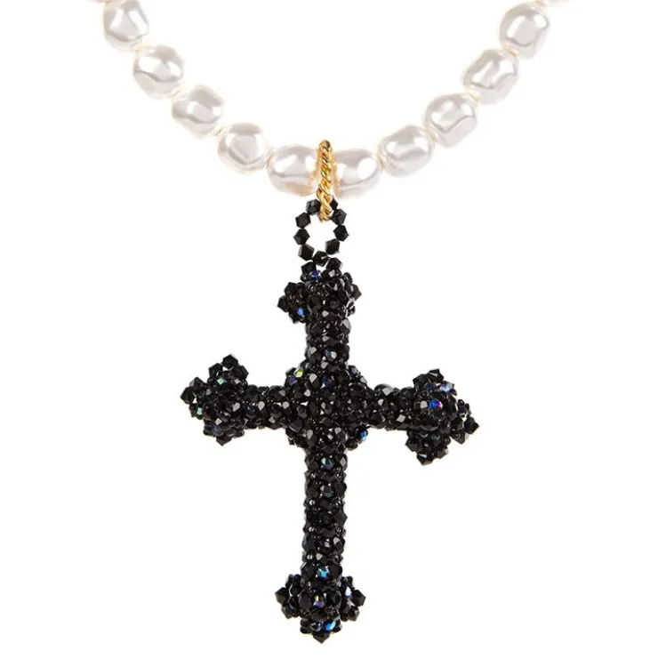 This Necklace Is Made With Magnificent Pearls And The Cross Is Formed Of A Mixture Of Resin And Glass Beads.
