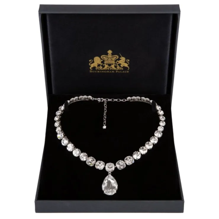 An Incredible Piece Of Evening Jewellery, This Elegant Necklace Is Inspired By The Diamond Necklace Worn By Queen Elizabeth Ii At Her Coronation In 1953. Designed With Sparkling Crystals Of The Highest Quality And Set Into Palladium Plated Metal, The Necklace Has An Outstandingly Beautiful Oval Drop.