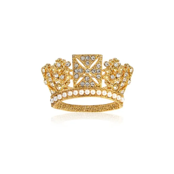 This Classic Gold-Plated Brooch Is Inspired By The Diamond Diadem Created For George Iv. It Is Set With The Highest Quality Cut Glass Crystal And Costume Pearls And Is Plated In Gold.