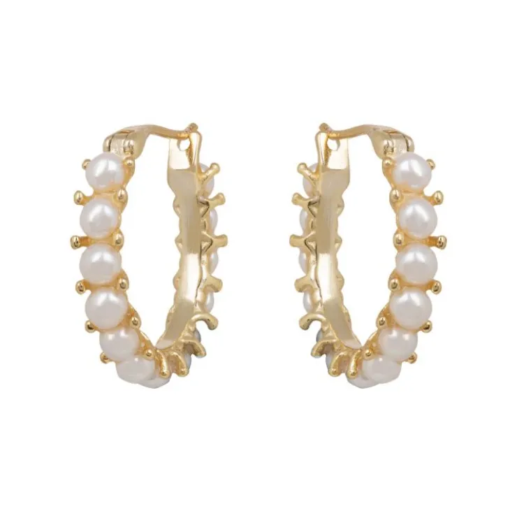 Made Of Gold Plated 925 Silver And Delicately Inlaid With White Pearls, These Earrings Make A Statement Whilst Also Being Classic.